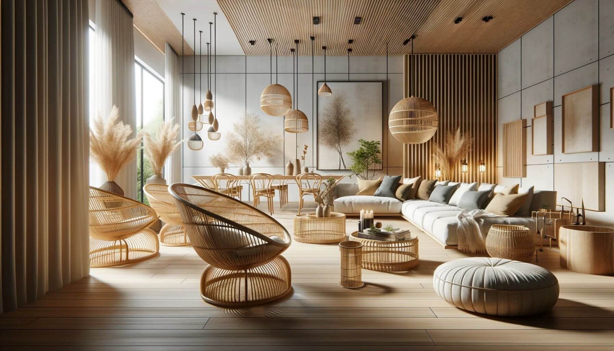 Những vật liệu truyền thống như tre, mây, liễu đang trở lại mạnh mẽ trong phong cách thiết kế tối giản. Chúng mang đến sự nhẹ nhàng, thông thoáng và cảm giác gần gũi với thiên nhiên, tạo điểm nhấn mềm mại cho không gian cứng cáp của Minimalism.